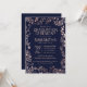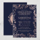 Elegante, moderno e chic faux rosa gold e trendy marinho blue floral, modelo desenhado à mão, convites para a Cerimônia de Graduação. Este design clássico e sofisticado é perfeito para o formando clássico, na moda e moderno. Personalize com sua própria mensagem na frente e um monograma personalizado inicial no verso. Todas as impressão de fotos.