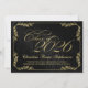 Anúncio personalizado simples e simples, formal e personalizado, com fundo preto sólido e folhas folhosas em tom de ouro metálico. O Elegante Convite para Graduação de Clássicos Preto/Dourado é Stated e Posh.