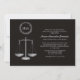 Todos um anúncio da graduação/convite elegantes no preto com uma escala de prata da grinalda e da justiça. A grinalda pode iniciais incluidas, monograma ou uma data. Faça uma impressão com este convite sofisticado.