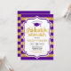 Convite à festa de formatura com faixas Douradas roxas. Design moderno e elegante com ouro brilhante falso e fonte de script. Perfeito para uma festa elegante.