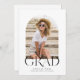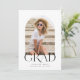 Comemore anos de trabalho de duro com o nosso moderno convite à licenciatura minimalista num sofisticado esquema de cores preto e branco. Este design moderno e minimalista apresenta uma foto de solteiro enquadrada na forma de arco de tendências. A palavra "FORMANDO" sobrepõe-se à parte inferior da fotografia. Sacudir-o para encontrar os detalhes da festa de formatura.