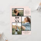 Este convite moderno e mínimo de festas de formatura fotográficas é perfeito para a sua filha. Ele apresenta um tema preto e cor-de-rosa pincelado com uma grade de três imagens, o nome do seu filho, o ano de graduação e a escola na frente. Na parte de trás está um design simples com todas as informações da parte. É contemporâneo, elegante e simplista.