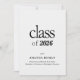 Anuncie sua formatura com um estilo atemporal usando este convite de formatura branco minimalista. Com uma diagramação limpa, tipografia serifada moderna e um design de grade de fotos para mostrar seus melhores momentos de formatura. Este cartão de dupla face inclui um anúncio formal "Turma de 2026" no verso, juntamente com detalhes acadêmicos personalizados. Perfeito para graduados do ensino médio, faculdade ou universidade que preferem uma estética clássica e elegante.