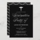 Convite para festas de formatura de marinho azul e branco da faculdade de medicina apresentando um roteiro elegante, caduceus com padrão de chevron. Este convite está disponível em outras cores.