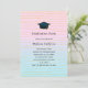 Convite Graduação Ombre Pastel Rosa Azul com Linhas Dourad