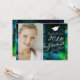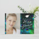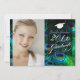 Convite de graduação ou festa de formatura com moldura de foto e graduado com capa em fundo de pena de pavão... facilmente personalizável. Fontes e cor de fontes DIY também.