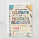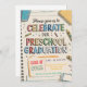 Este convite para a graduação pré-escolar é uma escolha clara para aqueles que querem uma celebração divertida e adequada à idade. O design concentra-se em elementos desenhados à mão, cores pastéis e detalhes de notas adesivas/notebook, criando uma aparência divertida e atraente. O convite é impressionante com sua mistura harmoniosa de cores, imagens e layout. É o começo perfeito para uma memorável graduação pré-escolar.