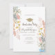 O design alegre apresenta flores silvestres coloridas de aquarela coloridas com boné de formatura de ouro brilhante.