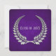 Símbolo de louro de prata para festa de formatura em fundo texturizado roxo. O texto pode ser editado para qualquer ano escolar.