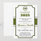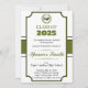 Simples convite para formatura. Perfeito para formandos machos ou fêmeas. Fundo verde-oliva, registro escolar pode ser editado.