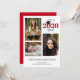 Este convite para a graduação moderna e limpa oferece uma colagem de 3 fotos em um fundo branco. O design é acentuado com a cor vermelha e oferece texto personalizado na frente e no verso.