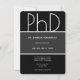 Um convite de festa de formatura de doutorado. Este convite minimalista tem um esquema de cores preto, cinza e branco. Todas as palavras e cores podem ser personalizadas.