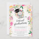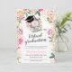 Classe de 2020, prepare-se para um novo estilo de festa de formatura, graduação virtual! Envie seus convites para a sua festa de formando virtual com esta coroa floral branca, cinzenta e rosa moderna, chica, com um computador e coração pintados, um boné superior ao lado. Adicione 3 da sua foto favorita no verso e envie seu link para o seu convite virtual! Perfeito para festa virtual, chá de longa distância e muito mais!