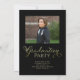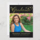Este design apresenta uma caligrafia de graduação graduada, com um modelo de duas fotos, um estudante do ensino médio ou universitário, uma fonte de caligrafia elegante e sofisticada, uma tipografia clássica moderna tradicional, um design minimalista simples e elegante, tema de cor do nome da escola, um convite simples para festa de formatura, cartões de anúncio de formatura, com texto gradiente dourado e fundo preto simples
