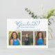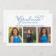 This design features a graduate graduation grad calligraphy, with a multi-photo collage three 3, a high school or college senior, an elegant fancy calligraphy script font, a modern classic traditional typography, a simple minimalist minimal elegant, school name color theme, a simple graduation party invitation, a graduation announcement cards, a Blue simple white background