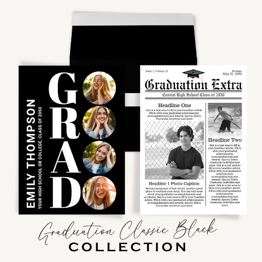 Convite Graduate Multi Photo Simple Elegant Calligraphy