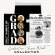 This design features a graduate graduation grad calligraphy, with a multi-photo collage three 3, a high school or college senior, an elegant fancy calligraphy script font, a modern classic traditional typography, a simple minimalist minimal elegant, school name color theme, a simple graduation party invitation, a graduation announcement cards, with a grey text and a simple white background