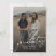 Celebrate the Ultimate Achievement: The Graduates! Our design highlights one stunning portrait on the front of both grads, accompanied by elegant white script lettering that reads "graduates." Flip it over and customize the modern party template with three more snapshots of the accomplished grads. Let's make this celebration even more memorable!