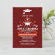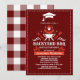Linda invitación a la fiesta "Backyard BBQ" incluye un motivo de cierre de graduación, un elegante texto personalizado con fuentes rústicas y modernas, Se puede personalizar el fondo Rojo oscuro y el trenzado de manteles de gingham en la parte posterior de la tarjeta. Perfecto para una fiesta de graduación al aire libre.