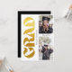 The front makes a statement: a striking gold-look "GRAD" lettering catches the eye instantly, paired with two photo spots to showcase your graduate's best moments — senior portraits, a favorite candid, or a then-and-now pair.