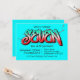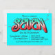 Um convite de graffiti azul neon brilhante e desorganizado adequado para uma criança de sete 7 anos.