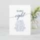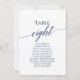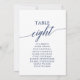 Estes elegantes cartões azuis da mesa número 8 assentos são perfeitos para um casamento simples. A design neutra apresenta uma carta minimalista decorada com tipografia romântica e caprichosa. A placa impressão na frente e atrás (lado duplo).