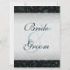 Um design simples e elegante com um fundo preto e um padrão floral azul turquesa, e uma faixa central branca com uma continuação tênue do padrão floral.