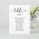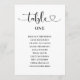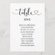 Ajude os convidados a encontrar seus lugares com este cartão de gráfico de assentos de casamento com letra moderna de coração. Cada cartão apresenta a caligrafia fluida e assinada 'Tabela' com um acento de coração, o nome da tabela por extenso e uma lista de convidados bem organizada abaixo. Exiba os cartões juntos em uma linha de roupa, quadro ou moldura para uma recepção encantadora. Totalmente personalizável com os nomes dos seus convidados e atribuições de mesa.