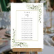 Este gráfico de assentos de mesa com folhas de eucalipto elegante apresenta folhas delicadas em aquarela com o plano de assentos dos seus convidados emoldurado por uma borda dourada. Projetado por Thisisnotme©