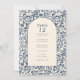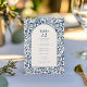 Este elegante design de assentos apresenta a mesma paleta de cores azul e creme de eterno com um quadro floral vintage, criando um olhar coeso que complementa o tema do seu casamento. Cada número de tabela é exibido de forma destacada em fontes de servidor clássicas, com uma lista de nomes abaixo para facilitar os ajustes de assentos. A intrincada fronteira floral e a refinada tipografia garantem que este quadro de lugares não só é funcional, como também é um complemento sofisticado à sua decoração de recepção. Perfeito para casamentos formais, esta design reúne tradição e elegância, guiando seus convidados para seus assentos com estilo.
