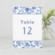 Este elegante design de número de assentos apresenta a mesma paleta de cores azul e creme de eterno com um quadro floral vintage, criando um olhar coeso que complementa o tema do seu casamento. Cada número de tabela é exibido de forma destacada em fontes de servidor clássicas para facilitar os ajustes de assentos. A intrincada fronteira floral e a refinada tipografia garantem que este quadro de lugares não só é funcional, como também é um complemento sofisticado à sua decoração de recepção. Perfeito para casamentos formais, esta design reúne tradição e elegância, guiando seus convidados para seus assentos com estilo.