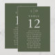 Estes gráficos de assentos de número de mesa de casamento minimalistas com monograma verde oliva podem ser personalizados com suas iniciais monogramadas. Criado por Thisisnotme©