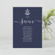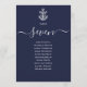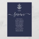 Estas elegantes cartas de gráfico de assentos de número de mesa de dupla face náuticas azul marinho apresentam uma âncora de navio e são perfeitas para todas as celebrações. Concebido por Thisisnotme©