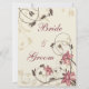 Lindos narcisos roxos e rosados estilizados, também chamados de junquilhos, colocados em um campo de trigo e videiras, adornam os cantos deste elegante conjunto de convites.