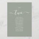 Esses elegantes cartões de gráfico de assentos número 2 duplos, verde sage, com rotulo escrito personalizado são perfeitos para todas as celebrações. Desenhados por Thisisnotme©