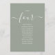 Esses elegantes cartões de gráfico de assentos de número 4 de mesa duplo lado com roteiro de assinatura verde salvia são perfeitos para todas as celebrações. Projetados por Thisisnotme©