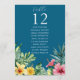 Estes modernos e elegantes gráficos de assentos número da mesa com flores tropicais em aquarela azul oceano são perfeitos para todas as celebrações. Criado por Thisisnotme©