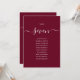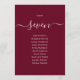 Esses elegantes cartões de gráfico de assentos com número de mesa duplo lado em letra caligráfica assinatura dburgundy são perfeitos para todas as celebrações. Desenhado por Thisisnotme©