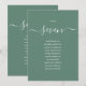 Esses elegantes cartões de gráfico de assentos com número de mesa duplo lado com escrita eucalipto verde são perfeitos para todas as celebrações. Desenhados por Thisisnotme©
