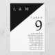 Esses números de mesas de casamento elegantes e minimalistas, pretos e brancos podem ser personalizados com suas informações na tipografia moderna. Projetado por Thisnotme©