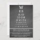 Nós dissemos "Sim" agora é hora de celebrar está escrito de forma única e divertida, em um convite de festa após o casamento, recepção única, de um único tipo. Os convidados vão adorar a excentricidade da nossa versão do gráfico de Snellen transformado em um convite de festa após o casamento que é facilmente personalizado usando o modelo fornecido. Se tiver alguma dúvida ou pedido especial, basta enviar um e-mail para zazzleinvites@gmail.com.