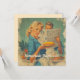 Uma dona de casa animada dos anos 50 apresenta uma deliciosa torta enquanto seu marido lê o jornal, capturando a Americana clássica do século médio com um charme vintage vibrante. Ideal para cartões nostálgicos.