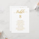 Cartões de Gráfico de Número de Sentado da Tabela de Script de Caligrafia Dourada, modernos e elegantes, que podem ser personalizados com seu texto e adicionar cada placa de número de tabela ao seu carrinho, um a um. Clique no botão "Personalizar" e use nossa ferramenta design para modificar este modelo. Veja a Design de Arte Gráfica para outros produtos que combinam com este design!