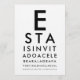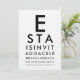 Convide seus convidados da maneira mais atraente com este Convite de Festa com Tabela de Olhos Personalizada, inspirado no icônico teste de leitura oftalmológico! O design começa com o "E" clássico e negrito e continua com linhas progressivamente menores - assim como um gráfico de Snellen real - criativamente transformado nos detalhes do seu evento. Personalize cada linha com o nome, data, local e mensagem de celebração para um anúncio inteligente, profissional e verdadeiramente memorável.