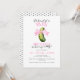Convite de chá de bebê com picles rosa com ilustração em aquarela e fundo moderno com bolinhas cria uma maneira divertida e elegante de anunciar uma celebração de bebê menina. Este convite de chá de bebê temático "grande pepino" apresenta um pepino verde pintado à mão adornado com um laço rosa suave, cercado por bolinhas pretas delicadas que adicionam charme e contraste visual. A combinação de texto em rosa claro e tipografia elegante dá ao layout um toque contemporâneo e feminino, perfeito para um chá de bebê, celebração ou revelação de gênero. O design da frente equilibra letras maiúsculas em negrito com fontes manuscritas fluidas para uma composição limpa e atraente, enquanto o padrão de bolinhas preto e branco no verso adiciona um acabamento coeso e inspirado em boutique. Ideal para mães que amam temas de chá de bebê com piadas de comida fofas, este design de convite moderno e rústico combina perfeitamente com decoração de fazenda, decorações de festa rosa e detalhes de celebração caprichosos. Os tons pastéis suaves, a linguagem lúdica e o layout elegante tornam-no uma escolha de destaque para realizar um chá de bebê memorável com personalidade e charme
