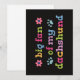 Letras coloridas retrô com flores e detalhes de patas celebrando donos orgulhosos de Dachshund. Uma declaração alegre e divertida para qualquer pessoa que ama seu dachshund leal e mostra verdadeiro entusiasmo canino.
