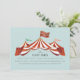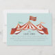Tenda antiga do circo com bandeiras cor-de-rosa e azuis; o título de "uma Festa de aniversário" na bandeira principal pode ser excluído para alterar o tipo de evento. Personalize a cor do plano de fundo, o corte do chip e o backer com o padrão, a foto ou mais detalhes do evento, conforme necessário. Ilustração original de Becky Nimoy