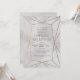 Convite de recepção moderno e elegante, com linhas geométricas douradas que se assemelham a uma joia