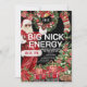 Esta divertida "grande energia de nick" convite para festas de Natal mostra Papai Noel com óculos de sol, uma coroa, estocagem, presentes sorteados com um arco vermelho/fita, poinsettias e saltos. O verso apresenta um fundo verde com sinos. Personalize-o para as suas necessidades. Você pode encontrar produtos correspondentes na minha loja.