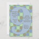 Legal convite para o nono aniversário, azul e verde, apresenta o grande número nove, com o seu texto personalizado dentro do numeral. Convide amigos e família para a sua festa monumental de marco!